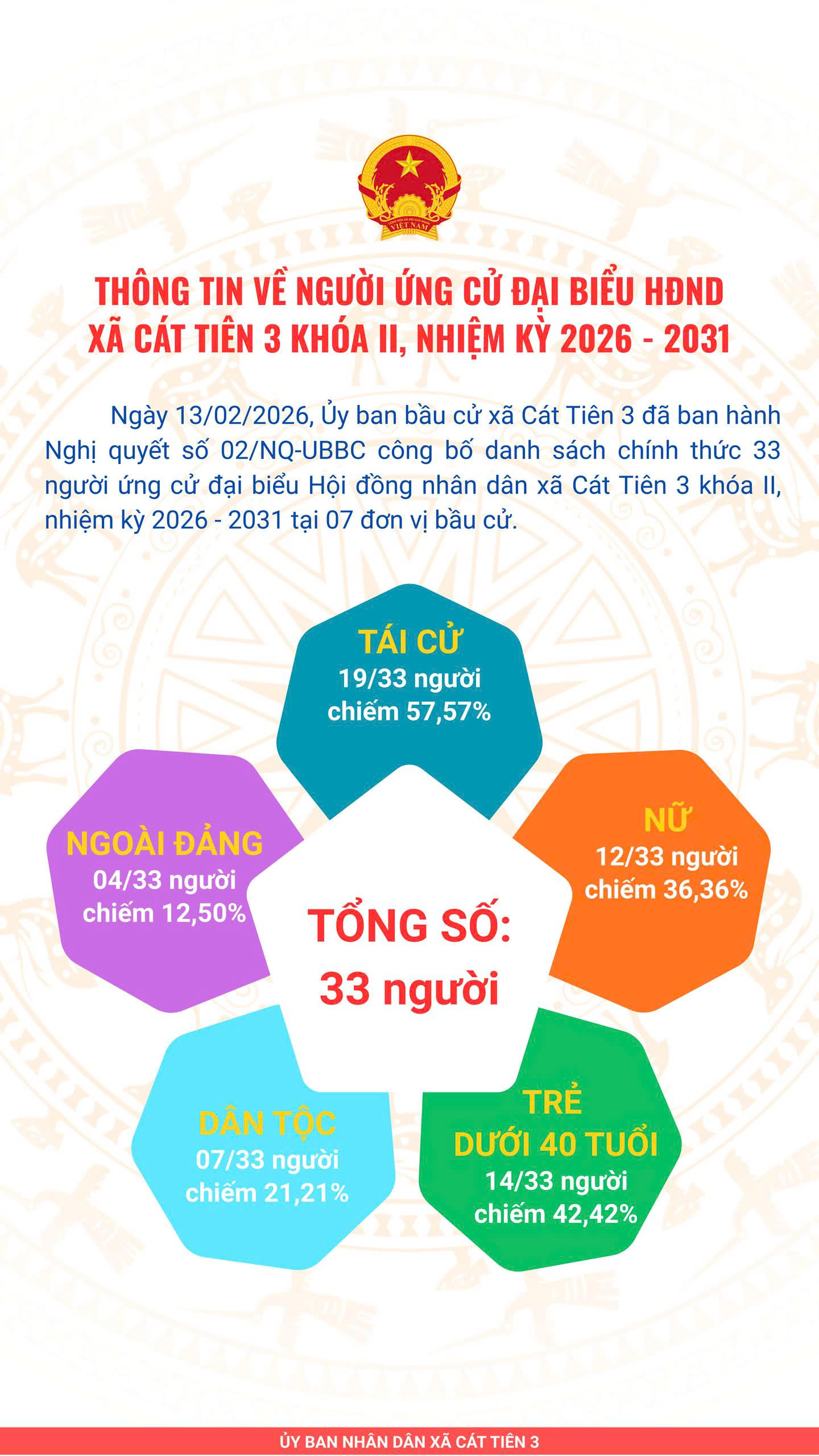 Danh sách chính thức 33 người ứng cử đại biểu Hội đồng Nhân dân xã Cát Tiên 3 khóa II, nhiệm kỳ 2026 – 2031